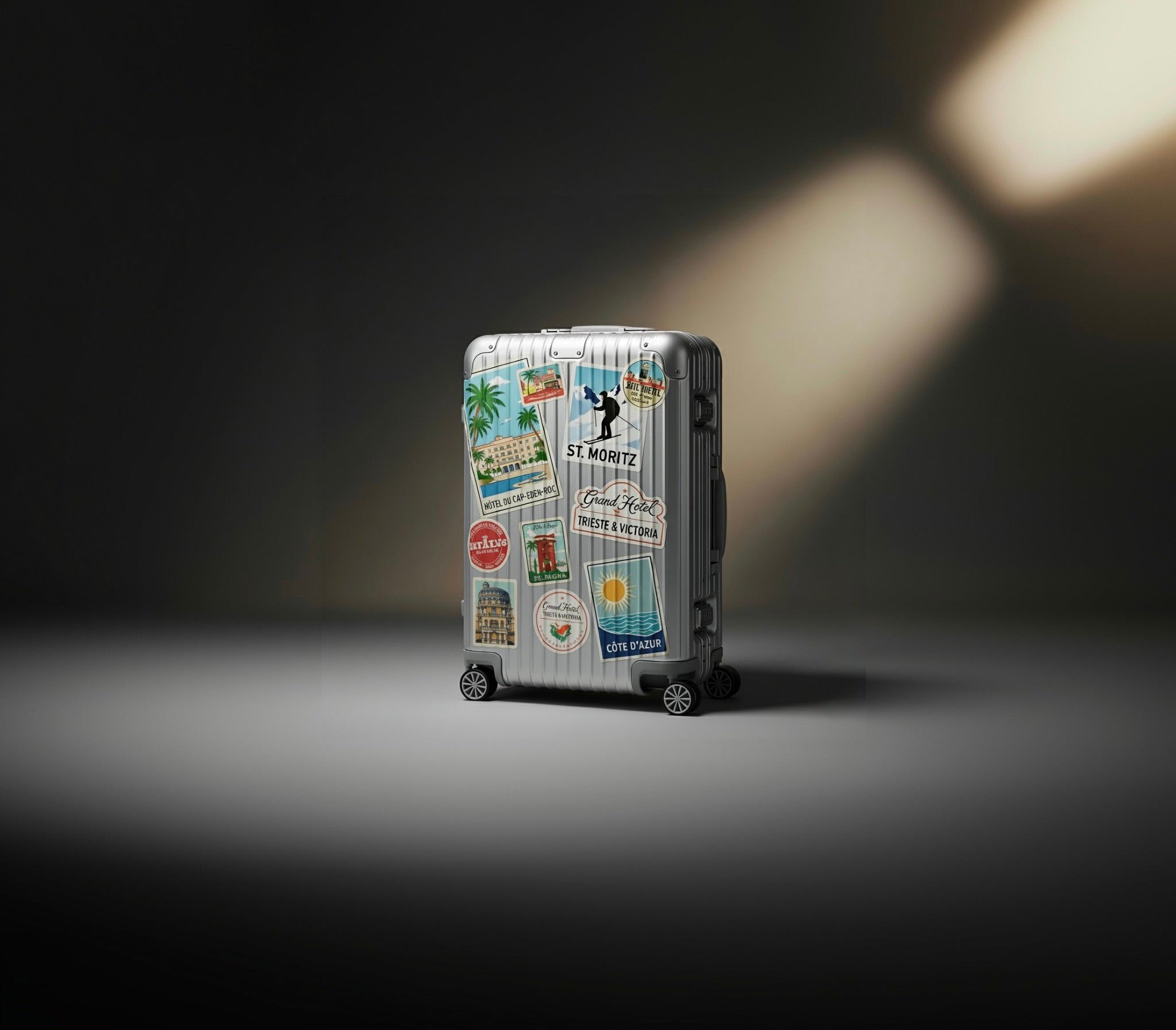 Collectible Travel Badges β Each suitcase comes with a set of branded stamps and badges.
